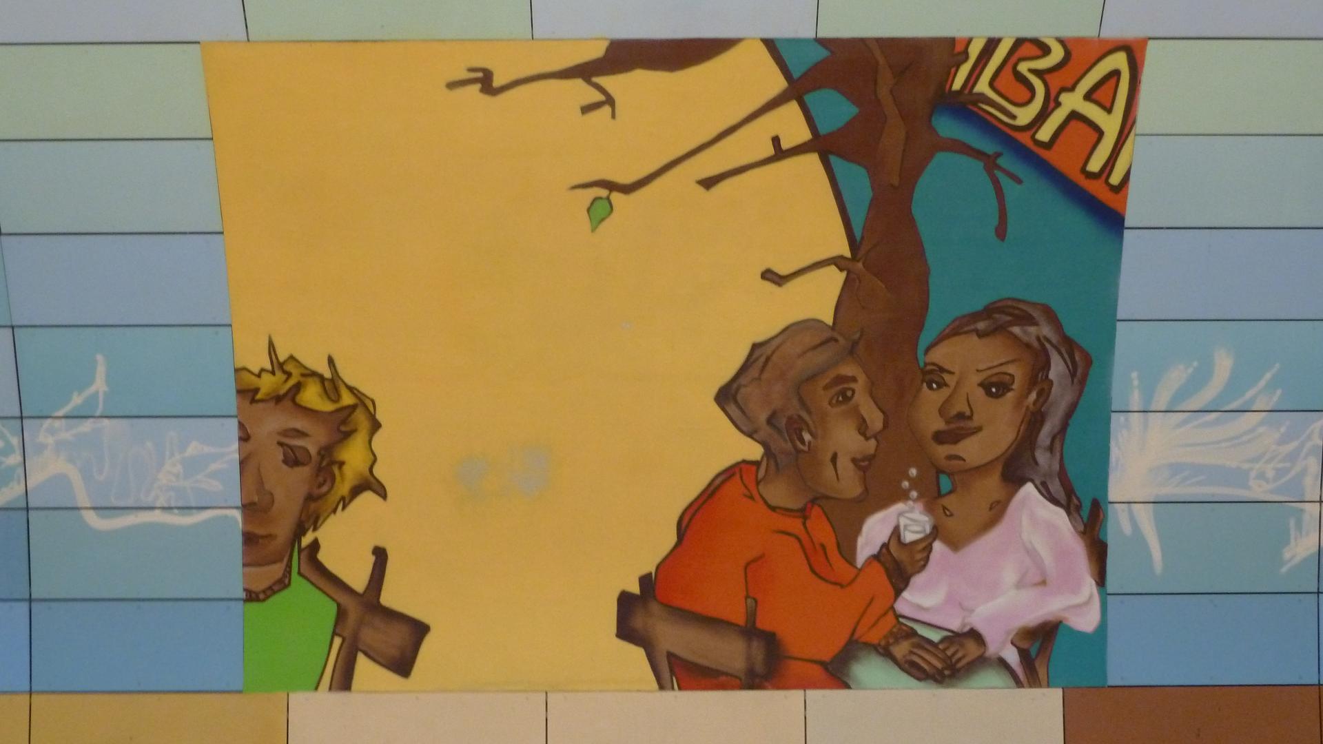 Im Rahmen der Renovierung des 1979 eingeweihten Stadtbahn-Bahnhofs wurden 2004 die Tunnelwände der Bahnsteigebene von verschiedenen Künstlergruppen mit zwei je 110 Meter langen Graffiti gestaltet, die mit den Begriffen Bermudadreieck, Unterwasserwelt und Erlebnismeile spielen.