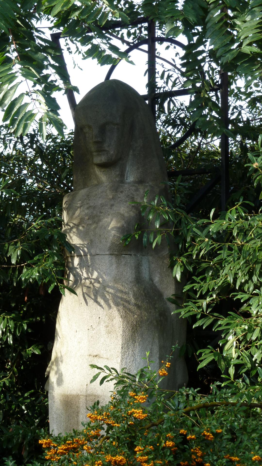 Neben dem Haupteingang zum Bergmannsheil steht - etwas versteckt - seit 1953 eine Figur der Heiligen Barbara, Schutzpatronin der Bergleute. Sie wurde geschaffen von dem Gelsenkirchener Bildhauer Hermann Breucker.